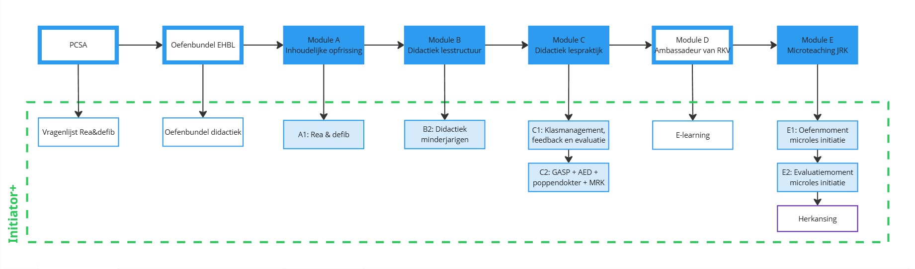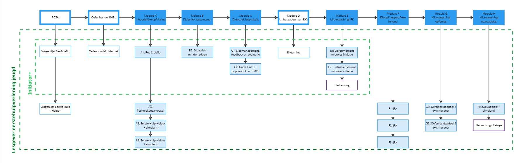 Het lesgeverstraject bestaat uit verschillende modules die je didactische kennis bijbrengen en je eerstehulpkennis en -technieken opfrissen.